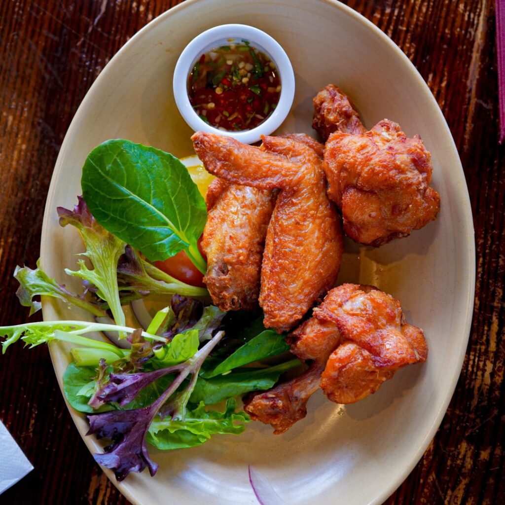 Crispy golden deep fried marinated quails, served with mum’s special sauce.